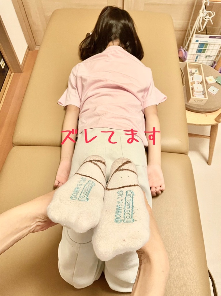 身体のバランスがこんなにズレていました。左足に弛みの反応が見られていたので本人に聞くと、最近よく左足を挫くと…。